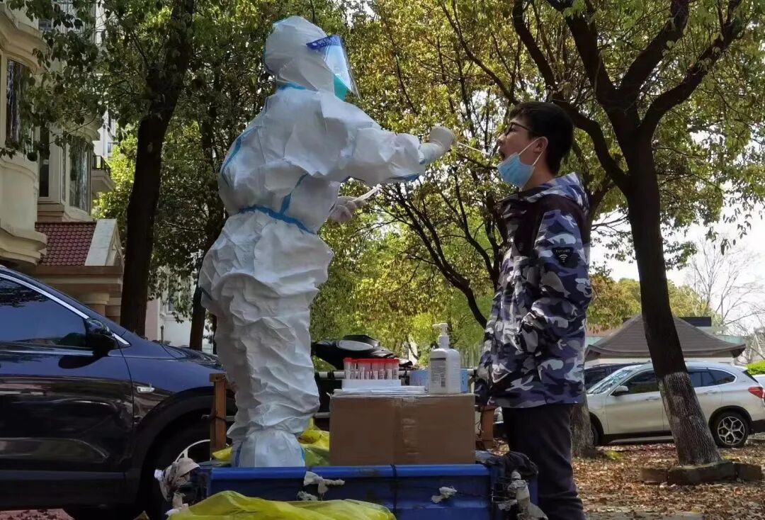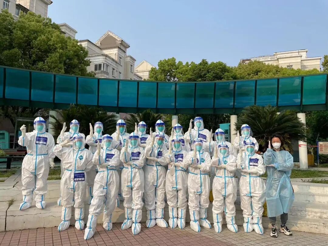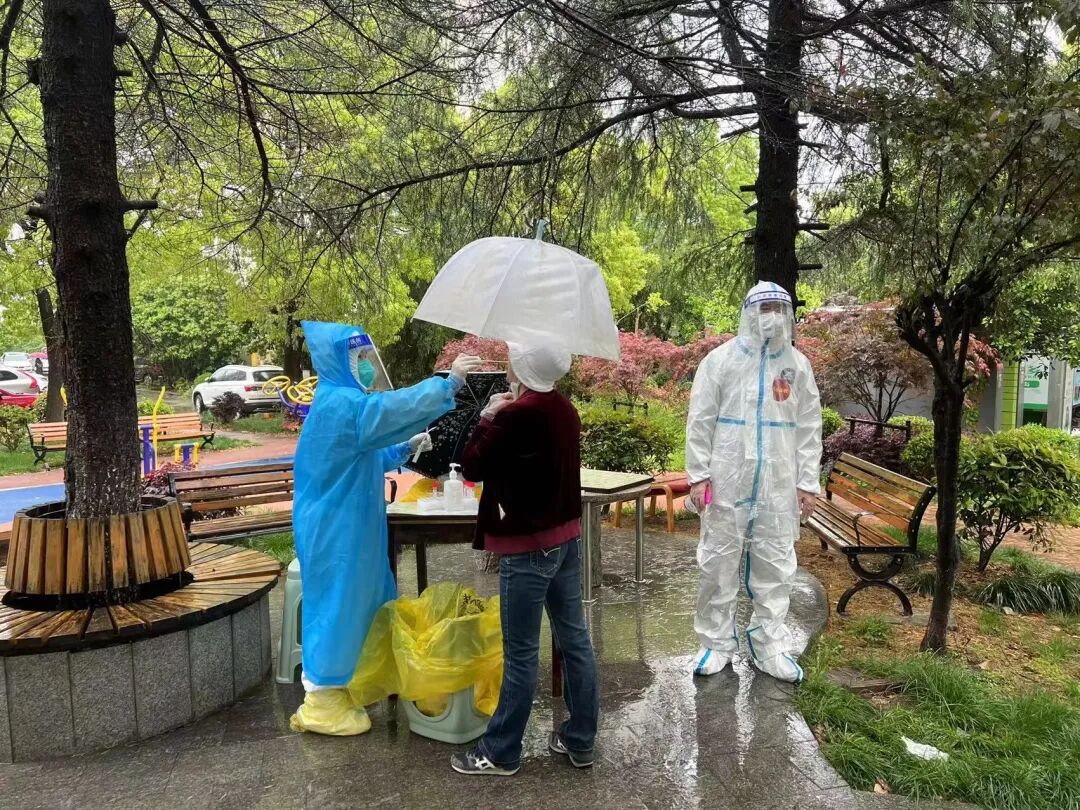 印象最深刻的还是在下雨天给市民们做核酸。雨天气压低、湿度高,防护套装外加穿一身雨衣,闷热、潮湿、汗水湿透衣服,星星点点的雨水让防护面屏变得模糊,采样工作的困难加大,大家都感觉有点体力不支。但是看着忙着排水的志愿者,撑伞前来排着长队的市民,我和队友们互相打着气,没有一人喊累,没有一句怨言,在风雨中坚持着完成了当天的核酸采样任务!